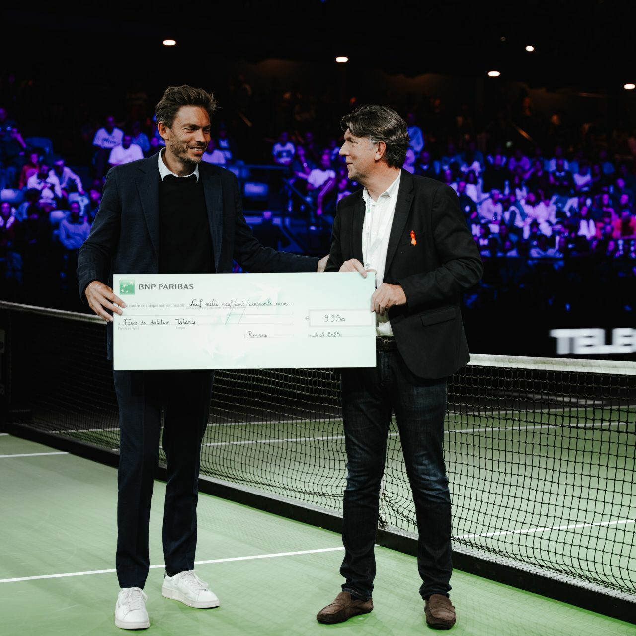 Le chèque symbolique a été remis sur le court central à François Almange, trésorier du fonds.